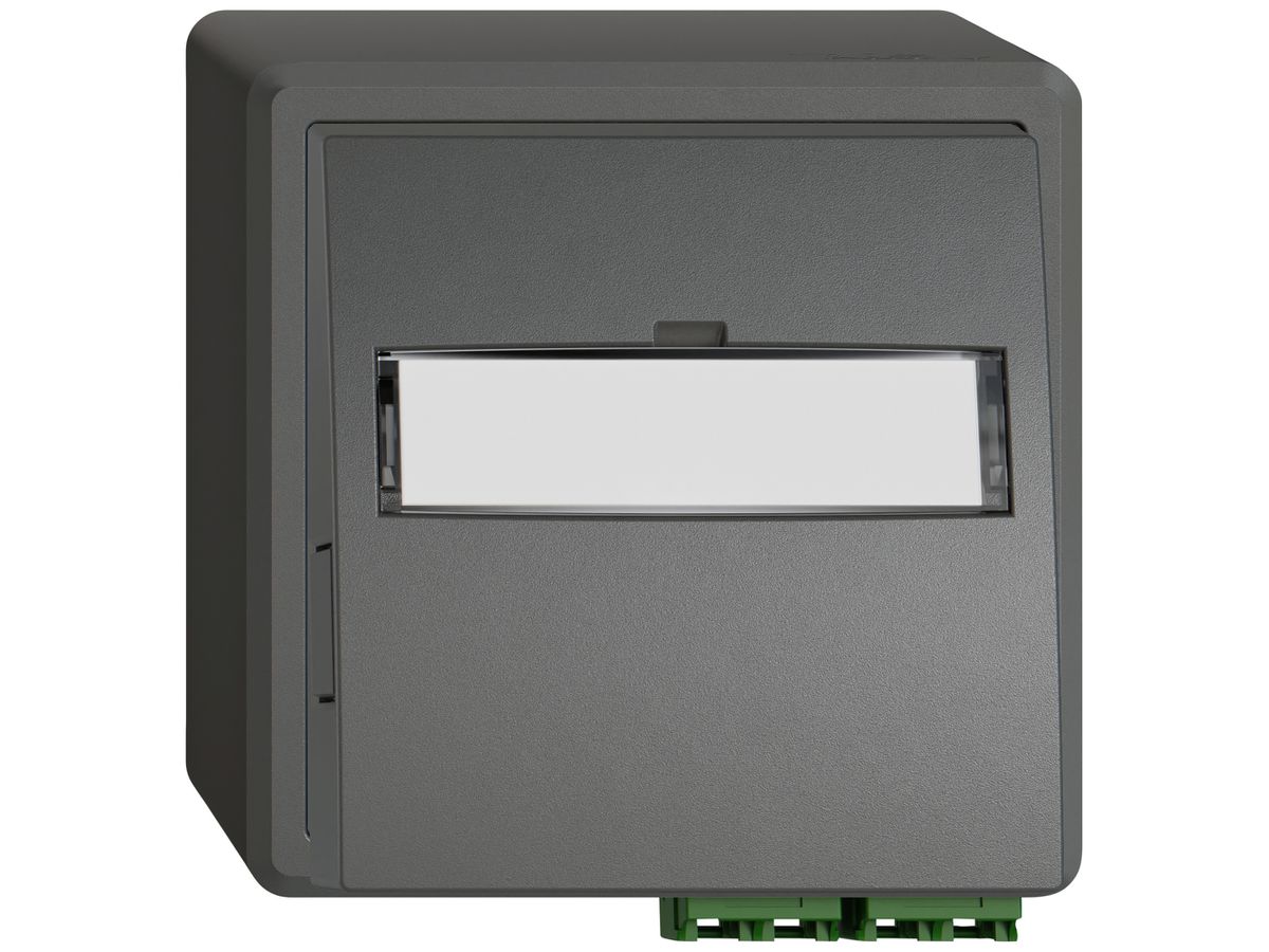 AP-FTTH-Dose Feller EDIZIO.liv, mit SNAPFIX®-Befestigungssystem, LC APC Diamond F-3000, 1 Mittelstück, für Faser G 657 A, inkl.Laser- und Staubschutzklappen, IEC 61754-20/ED1