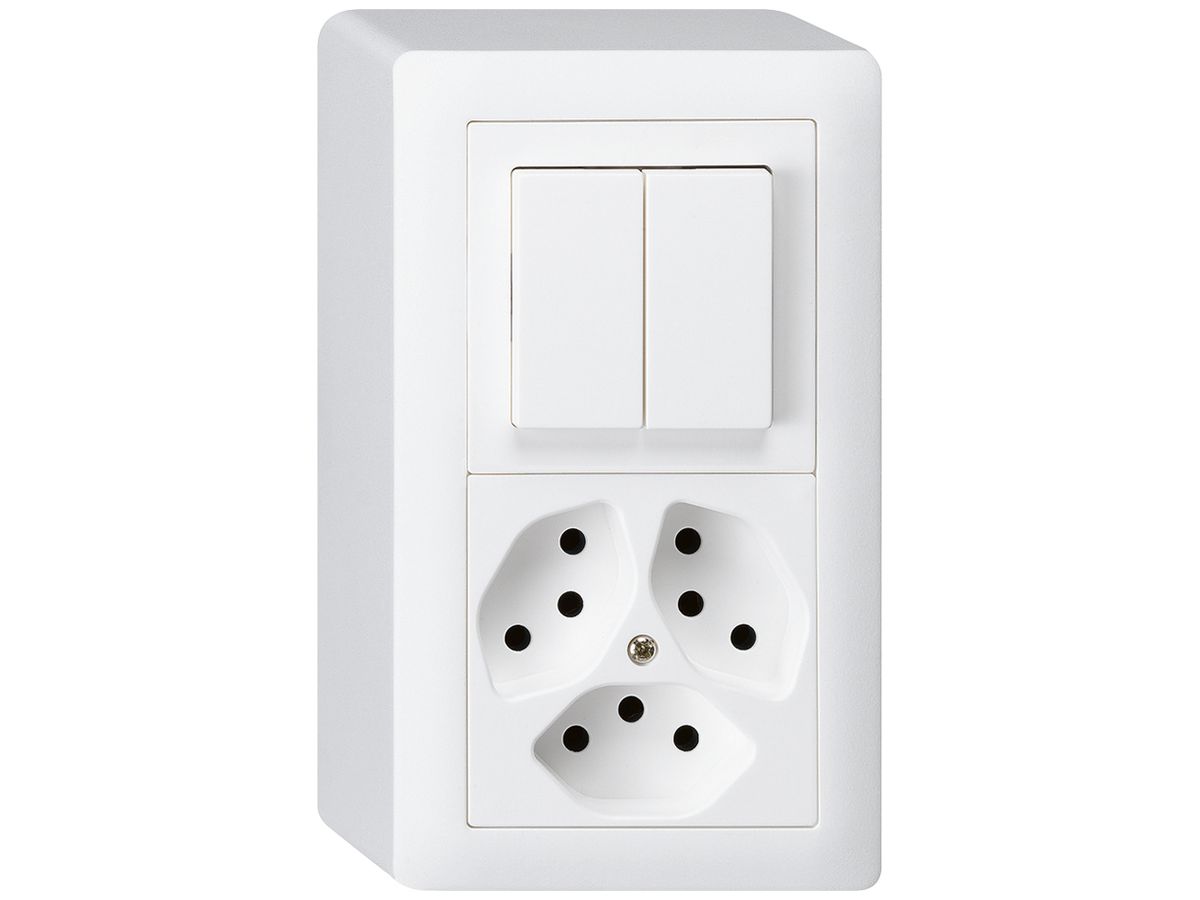 AP-Kombination Hager kallysto, Befestigungsplatte 77×137 mm, Steckklemmen, beleuchtbar