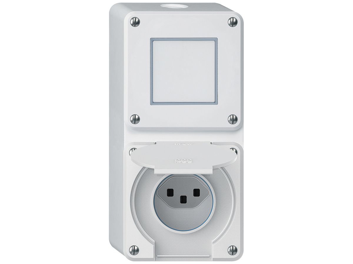 AP-Kombination robusto 2×1, Schalter Schema 3/Steckdose T23 IP55 weiss