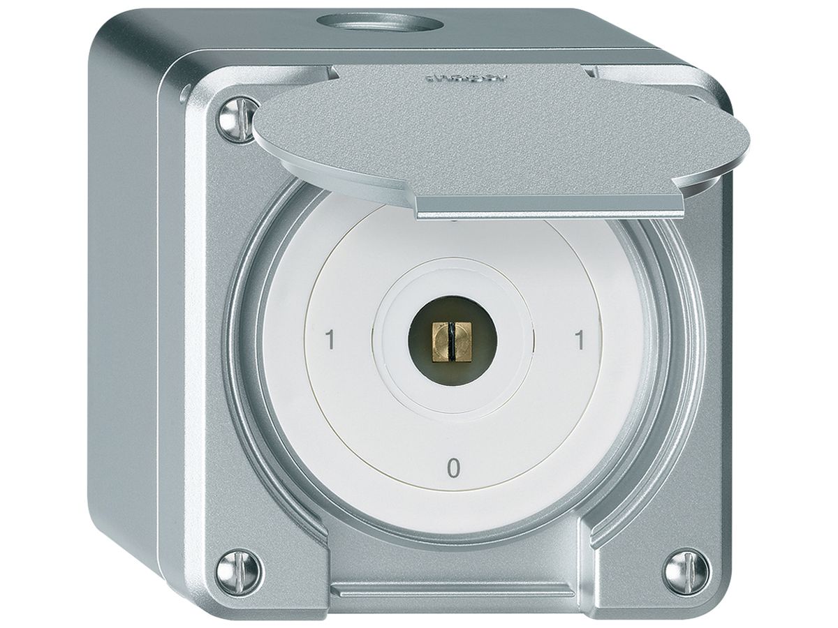 AP-Steckschlüsselschalter robusto IP55 mit Klappdeckel S0/2P aluminium Vierkant