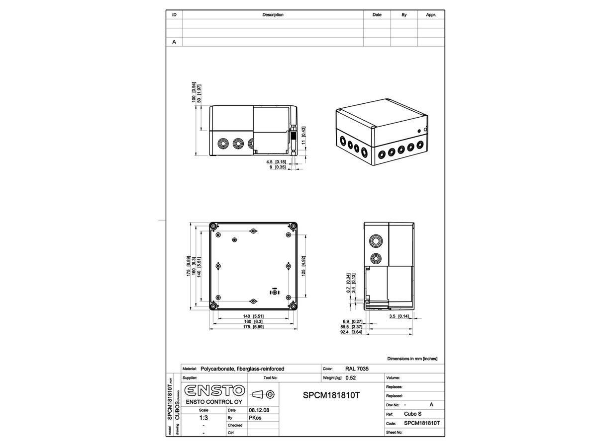 Apparategehäuse Swibox CUBO S, leer, Innen- und Aussenmontage SPCM, glasfaserverstärkt, schlagfest, flammwidrig, T -50…130 °C, UV-beständig, Buchsen für Montageplatte, Lochplatte oder Profilschiene EN 50022-35, inkl. 4 Befestigungsschrauben, Einführungen seitlich ausbrechbar für M12…25, plombierbar, Einführungen oben/unten/seitlich 2×M16/25+6×M12/20, Deckelscharniersatz, längsseitig montiert