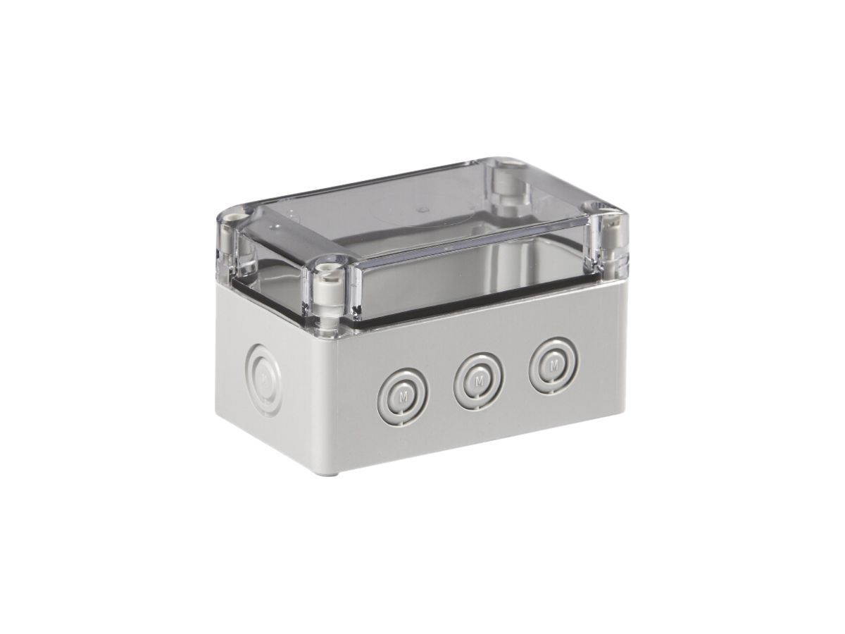 Apparategehäuse Swibox CUBO S, leer, Innen- und Aussenmontage SPCM, glasfaserverstärkt, schlagfest, flammwidrig, T -50…130 °C, UV-beständig, Buchsen für Montageplatte, Lochplatte oder Profilschiene EN 50022-35, inkl. 4 Befestigungsschrauben, Einführungen seitlich ausbrechbar für M12…25, plombierbar, Einführungen oben/unten/seitlich 2×M16/25+6×M12/20, Deckelscharniersatz, längsseitig montiert