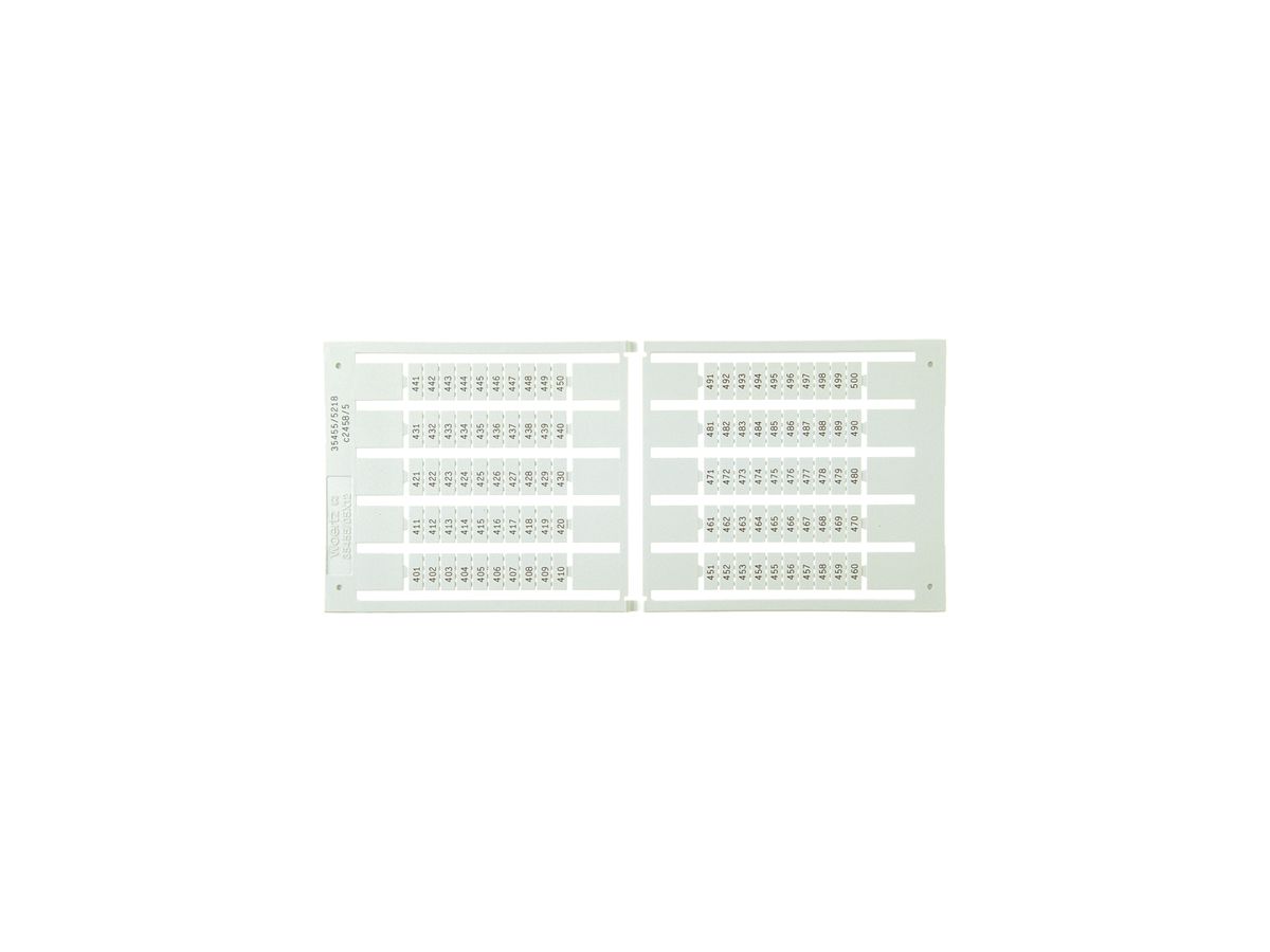 Bezeichnungs-Karte Woertz RB 5×5, Thermoplast, 100 Schildchen, Beschriftung schwarz, für Klemmen Breite 5 mm (1 Packung zu 5 Karten = 500 Schildchen), 100 Symbole/Buchstaben/Karte, Schildchen 5×5 mm