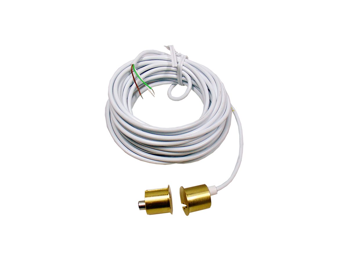 EB-Magnetkontakt BSW DMC15Z.06, 1× Schliesser und Sabotageschlaufe (Typ Z), Schaltvermögen 0.5 A / 100 V DC (5 W), Schaltabstand ≤ 10 mm, Kabel (4×0.14 mm²) 6 m weiss, IP68, stirnseitige Montage, Ø 17.8/15×19 mm, Mindesteinbautiefe 28 mm, Messing