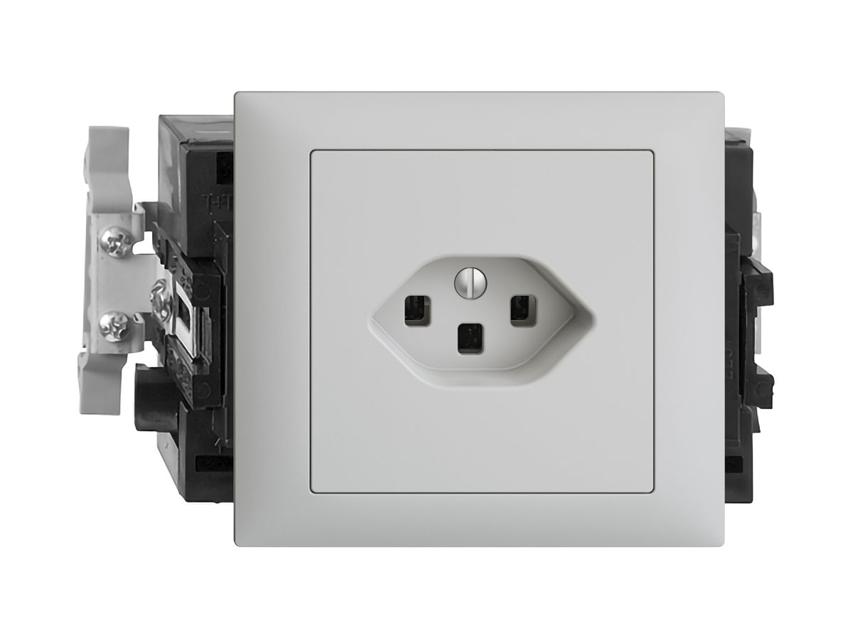 Steckdose Typ 23 Feller EDIZIOdue FKE.53, L+N+PE, SNAP-Befestigung für DIN-Profil 35 mm, Einbautiefe verstellbar 46…69 mm (eingestellt auf 53 mm), für Brüstungskanäle