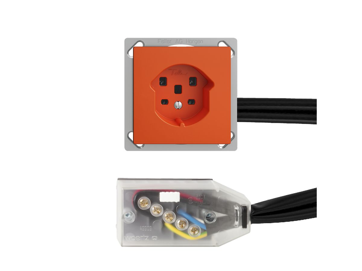 EB-Steckdose EDIZIOdue T25 orange für Flachkabel Technofil