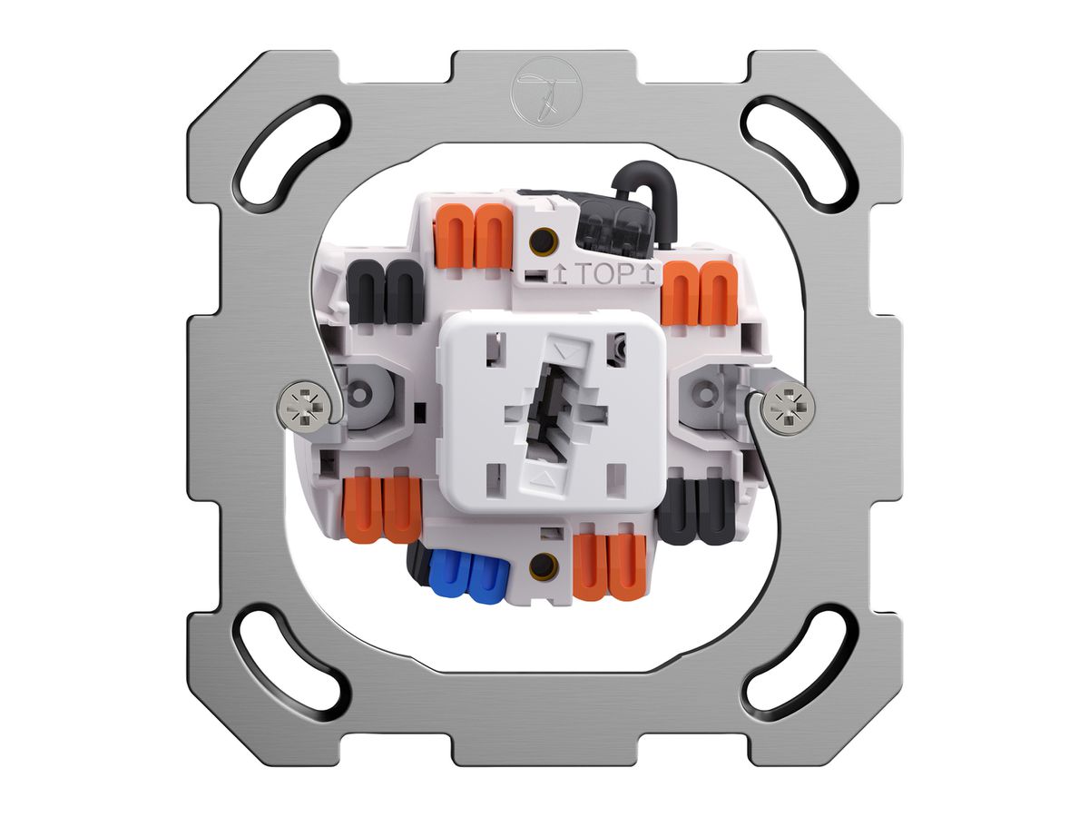Einsatz zu Leucht-Druckschalter Feller, Schalter/Taster umschaltbar (Notfunktion), Beleuchtungsset LED gelb 1.0 mA, Kontrolllampe auf Orientierungslampe umsteckbar, mit Befestigungsplatte