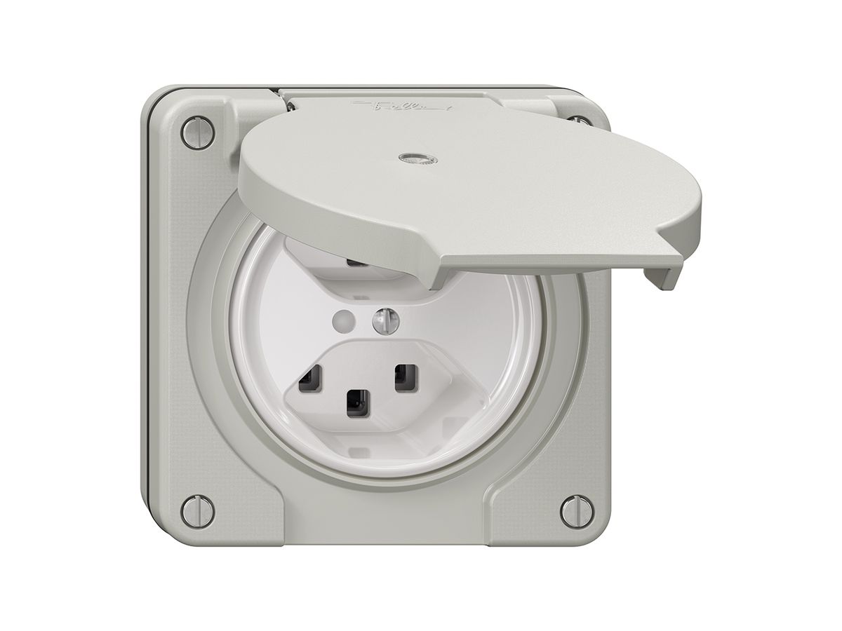NUP-Steckdose NEVO, 2×T23, IP21, m.LED, lichtgrau