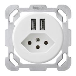 Einsatz zu Steckdose 2×USB & T13/23 Hager Bauart E 2400mA