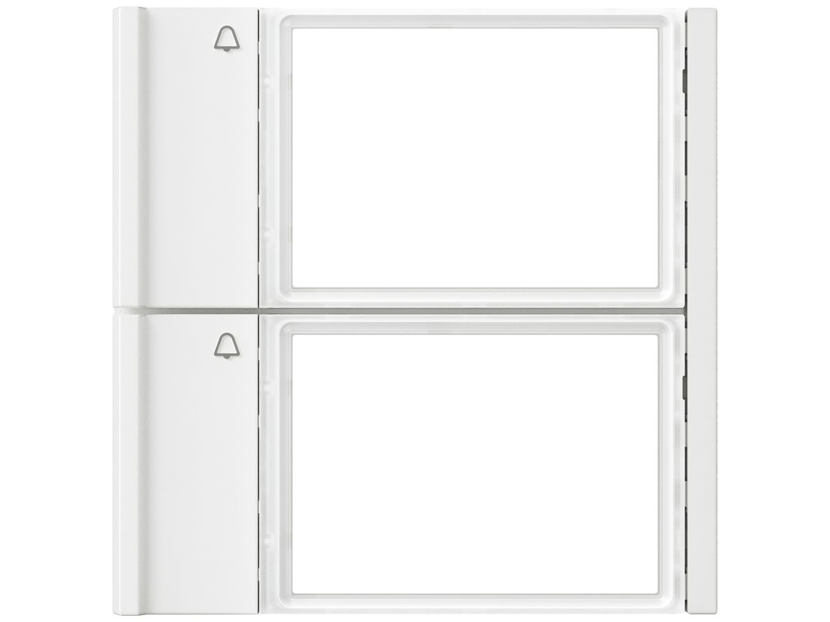 Ruftasten-Modul Siedle Vario, Ausführung sprechen/klingeln, Installationstechnik Bus-System, Betriebsspannung 12 V, Farbe weiss, Anzahl der Ruf-/Klingeltasten 2, Tastenfeld, Anzahl der Benutzer 2, mit Glockensymbol und hinterleuchtbarem, wechselbaren Namensschild, Verkabelung durch vorkonfektionierte, steckbare Kabelverbindung
