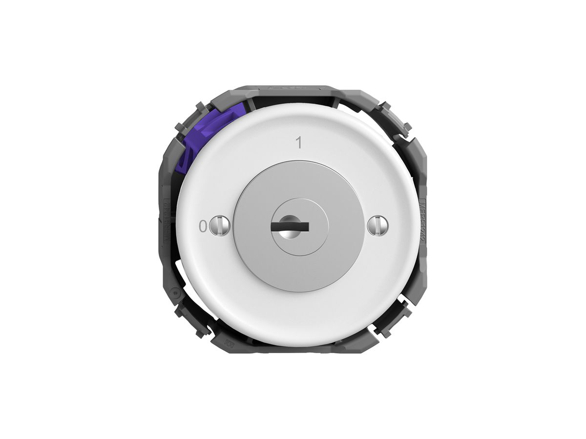 Schlüsselschalter AWAG CA10.A293.Q.A.SS.61, Design Feller STANDARDdue, mit Schalterzylinder KABA 1007F, Schliessung 631984 und 2 Schlüsseln, mit 1 Pol voreilend, Ausschalter, 4-polig, Funktion 0-1, Beschriftung 0-1, Schaltwinkel 90°, 2 Fluchten, kompatibel mit Feller SNAPFIX®