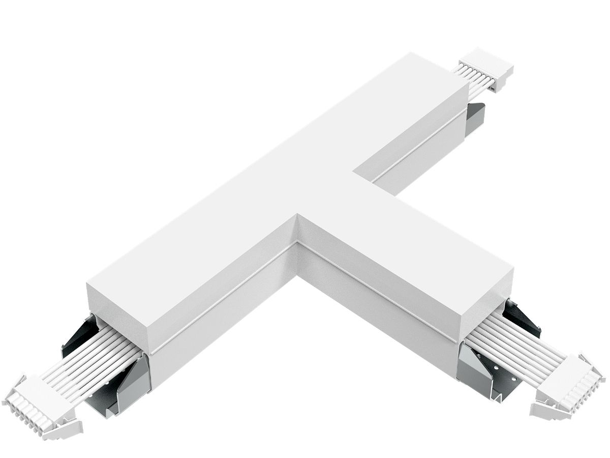 T-förmiger Tragschienenverbinder, Stecker Rechts / Links und T-Seite Kupplung 8pol., mit 3 Verbindungseisenplatten mit Schrauben, wird mit einer Aluminiumabdeckung geliefert.