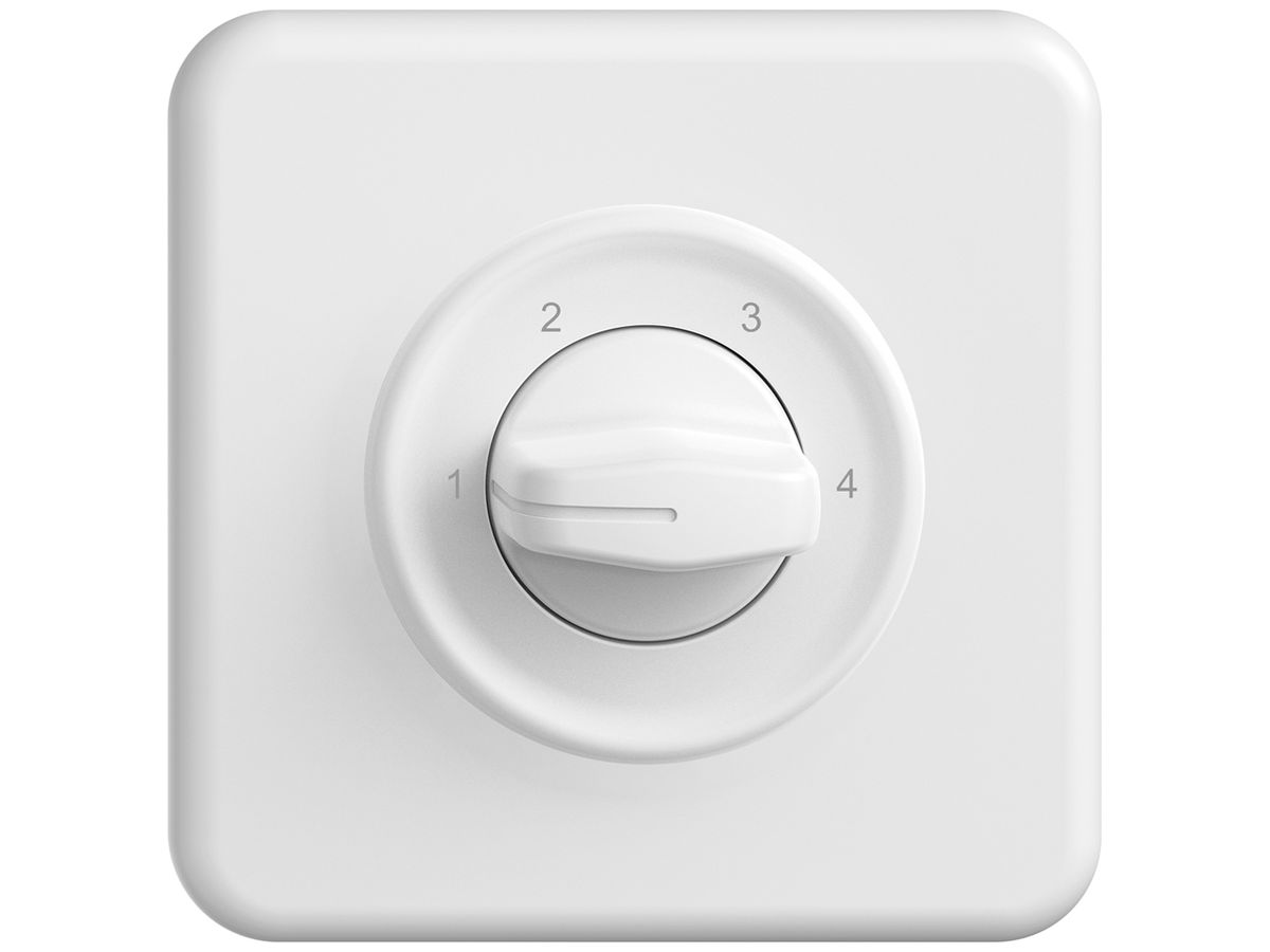 UP-Drehschalter AWAG CA10.A251.QMI.A.61, Design Feller STANDARDdue, mit Drehgriff, Stufenschalter, 4 Stufen, ohne 0-Stellung, 2-polig, Beschriftung 1-2-3-4, Schaltwinkel 50°, 4 Fluchten, LED-Last max: 200 W, kompatibel mit Feller SNAPFIX®