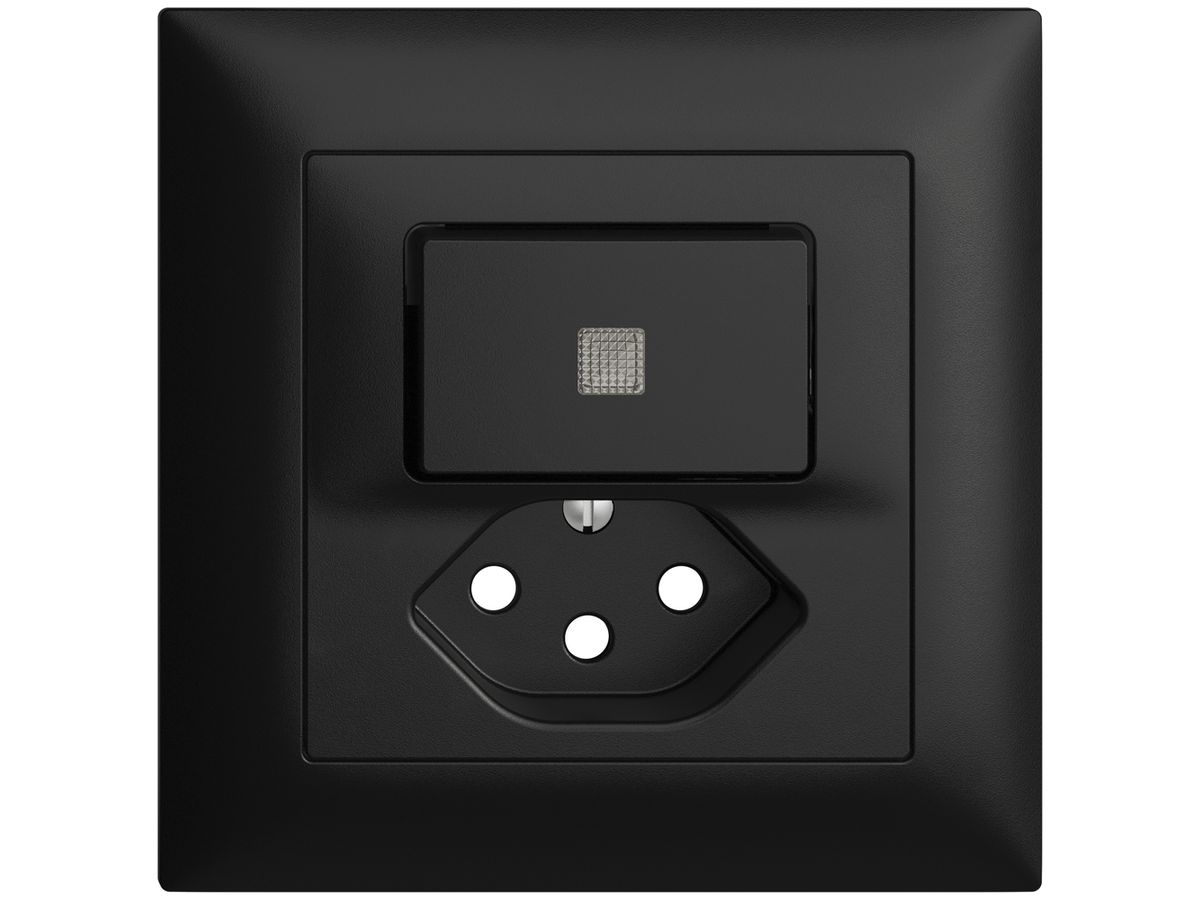Frontset Feller EDIZIOdue, zu Kombination mit Steckdose Typ 13, Abdeckrahmen, Frontplatte und Druckknopf mit Frontlinse