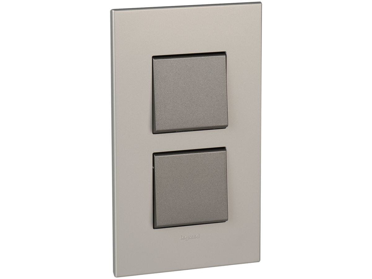 Kombination Gr. I-I Legrand Arteor, Abdeckrahmen, Befestigungsplatte 79×140 mm, (Sch 3+3/1L: für Sch 1 Drahtbrücke stecken), 2×Wippschalter 10 A 250 V