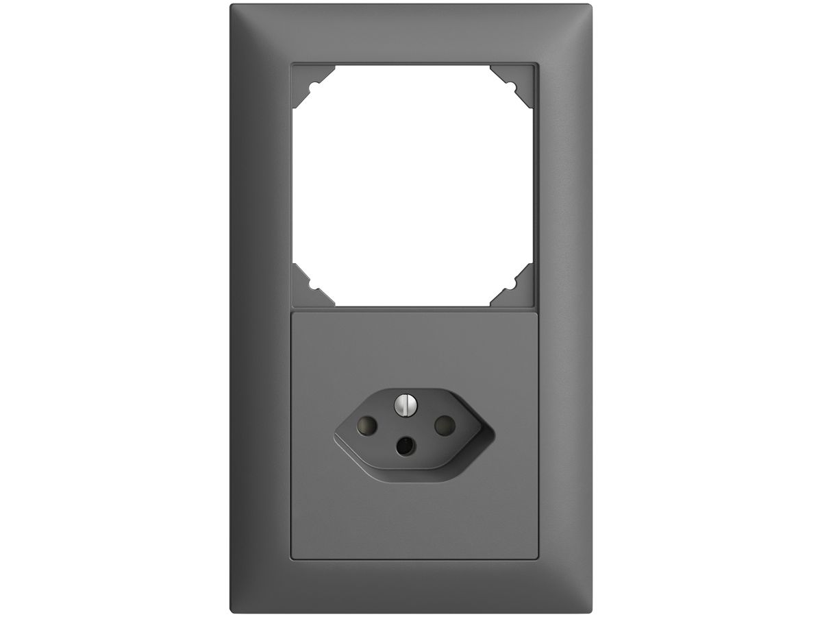 Kombination Feller EDIZIOdue Gr. I-I, Abdeckrahmen, Befestigungsplatte 77×137 mm, Steckklemme, leer + Steckdose 10 A 250 V