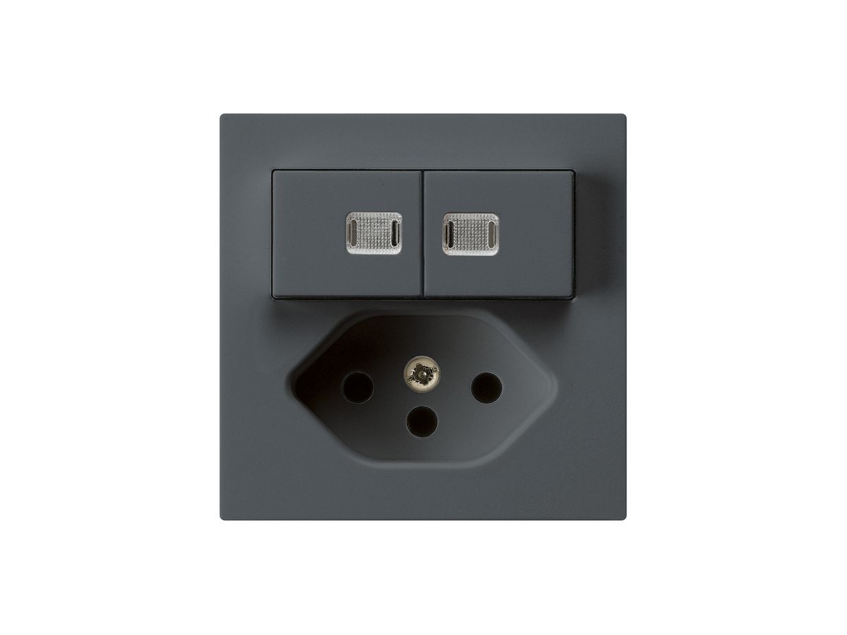 Einsatz zu Kombination mit Steckdose Typ 13 Hager kallysto, Frontset mit Druckknopf 40×25 mm, Steckklemmen, ohne Kinderschutz, Leucht-Druckschalter + Steckdose Typ 13, Orientierungs- oder Kontrolllampe, mit Leuchtpatrone Serie 209 959 013 und Frontset 378 344 003 (Sch 1/3+3/1L: für Sch 3+3 Schemaverbinder entfernen), ohne Kinderschutz