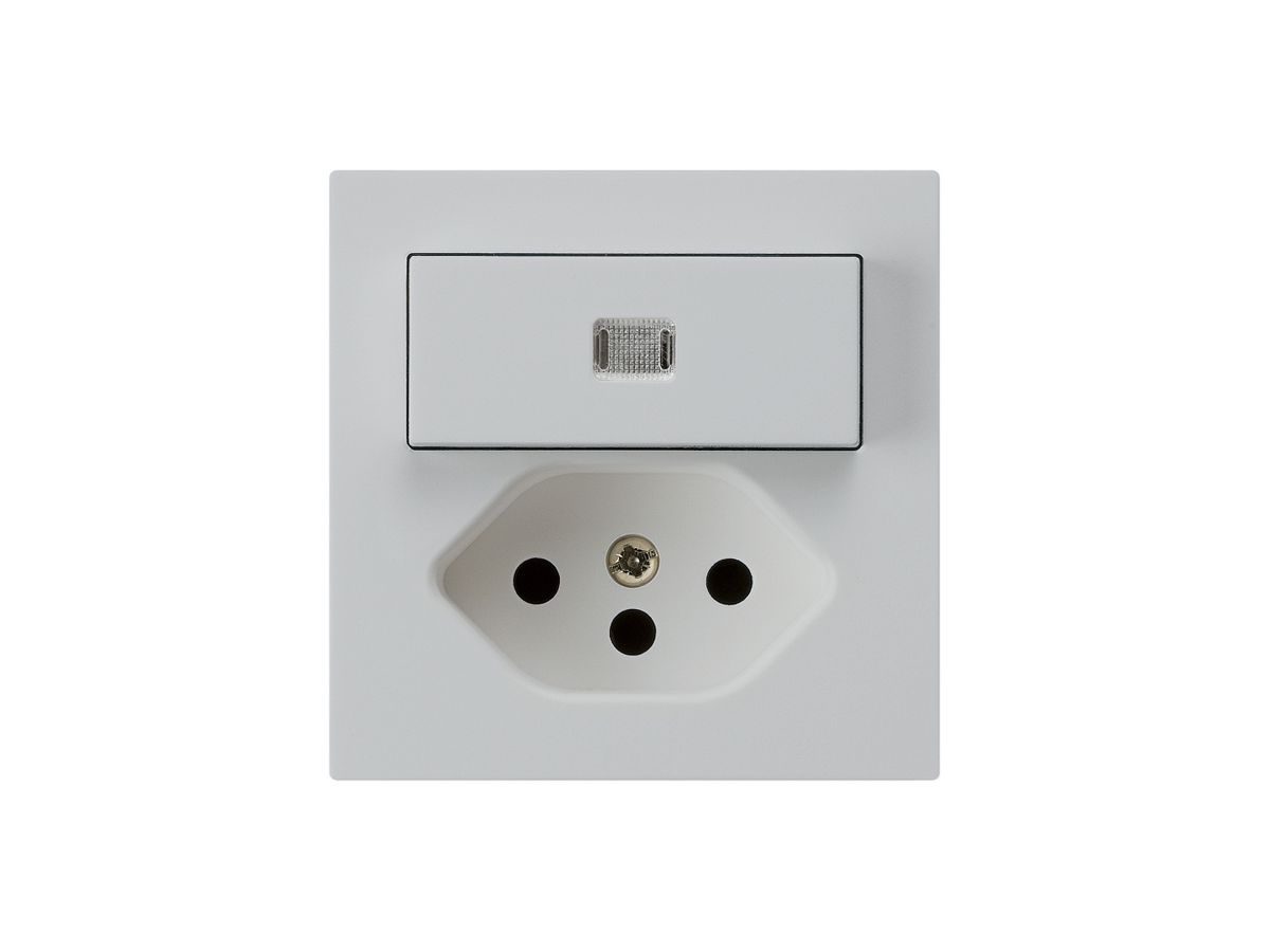 Einsatz zu Drucktaster + Steckdose Typ 13 Hager kallysto, Frontset mit Druckknopf 40×25 mm, Steckklemmen, ohne Kinderschutz, Leucht-Drucktaster + Steckdose Typ 13, Orientierungs- oder Kontrollampe, 1 LED gelb 209 962 003, Frontset 378 349 003 mit 1 Linse