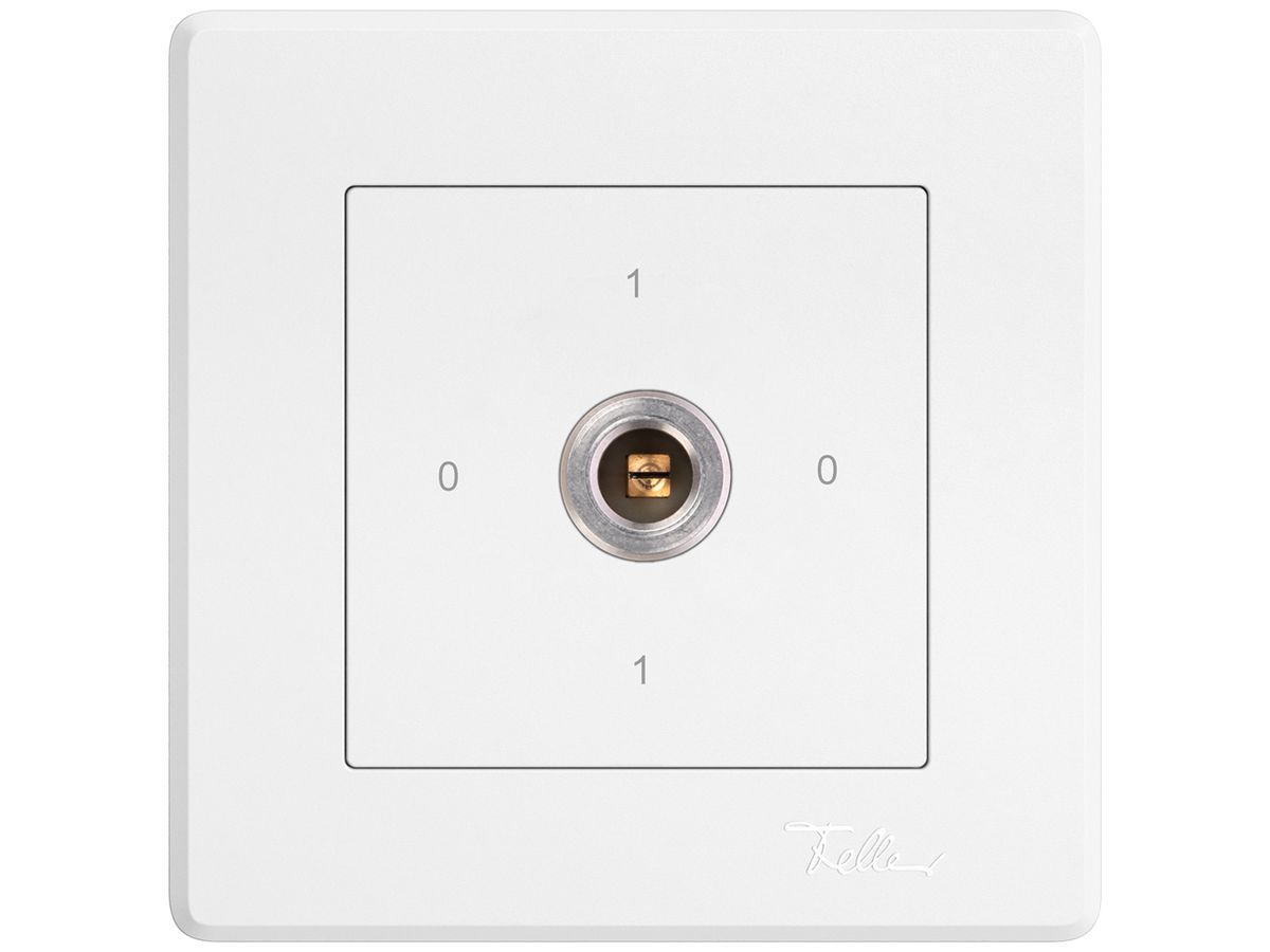 UP-Schlüsselschalter Awag EDIZIO.liv, Schaltungsart Ausschalter 1-polig, Bemessungsstrom 20 A, Nennspannung 690 V, Gerätebreite 96 mm, Gerätehöhe 96 mm, Gerätetiefe 31 mm, Einbautiefe 31 mm, Werkstoffgüte Thermoplast, Farbe weiss, RAL-Nummer (ähnlich) 9010, halogenfrei, geeignet für Schutzart IP20, Gravur 0-1-0-1, Vierkant/Schlitz, Rundschaltung, kompatibel mit Feller SNAPFIX®