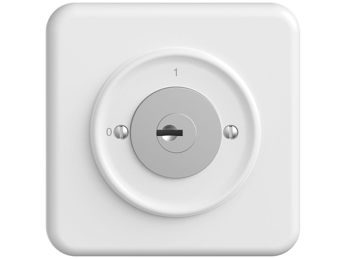 UP-Schlüsselschalter AWAG CA10.A291.QMI.A.SS.61, Design Feller STANDARDdue, mit Schalterzylinder KABA 1007F, Schliessung 5000 und 2 Schlüsseln, Ausschalter, 2-polig, Funktion 0-1, Beschriftung 0-1, Schaltwinkel 90°, 1 Flucht, kompatibel mit Feller SNAPFIX®