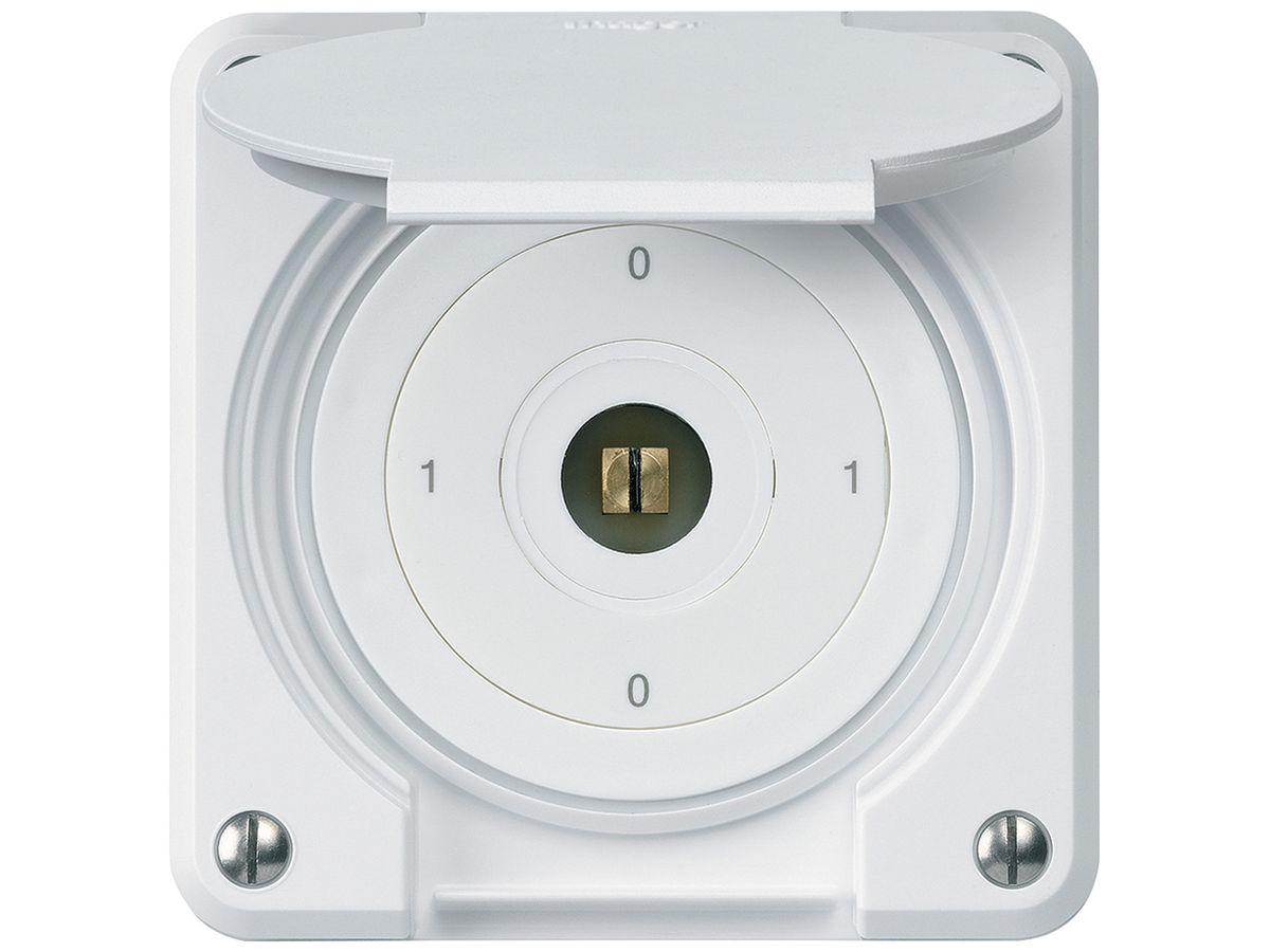 UP-Steckschlüsselschalter robusto IP55 mit Klappdeckel S0/1P weiss Vierkant