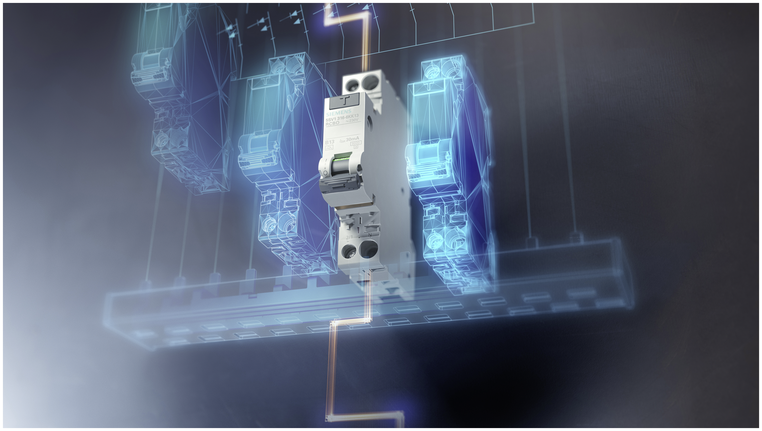 FI/LS-Schalter vereinen Fehlerstromerfassung und Überstromschutz in einem Gerät. Mit dem FI/LS-Schalter 5SV1 ist dies sogar in nur einer Teilungseinheit (1 TE) möglich. Dadurch können mehr Schutzgeräte in einem Verteiler verbaut und bestehende Installationen einfach und platzsparend erweitert werden. Die Schutzgeräte lassen sich zusätzlich mit einem Brandschutzschalter-Block 5SM6 verbinden und bieten so Personen-, Leitungs- und präventiven Brandschutz in nur zwei Teilungseinheiten.